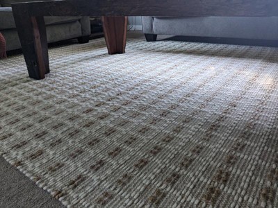 I found this rug via @erin_sunnysideup. The stock images here make it appear like an orangey beige (high ISO or warm lighting, not sure what happened). The photos Erin posted showed it's true colors. I tried to photograph the rug in various lighting so you could see it better in direct light vs shade. It's more of a light beige brown paper bag color with darker beige and cream lines. It's lovely, neutral, matches everything. Ties a whole room together. It's thick, feels really quality. Although shipped on a roll, it flattened instantly when I layed it down, no curling whatsoever. No smells. Easy to vaccum. Very happy! 5 stars. Please make more rugs like this, Target! It's awesome!!!