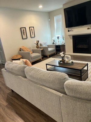 This rug has added the warmth that we were looking for in our gray home! The design is very modern and I was really surprised at how early it is to clean with little ones that make a mess. Vacuuming was a little tough at first with the variations in pile but I’ve got it down!