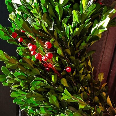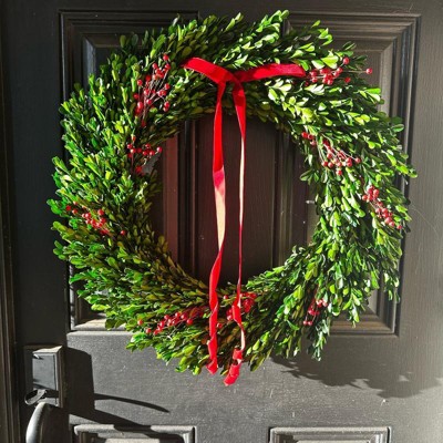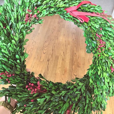 - Boxwood preserved wreath in green