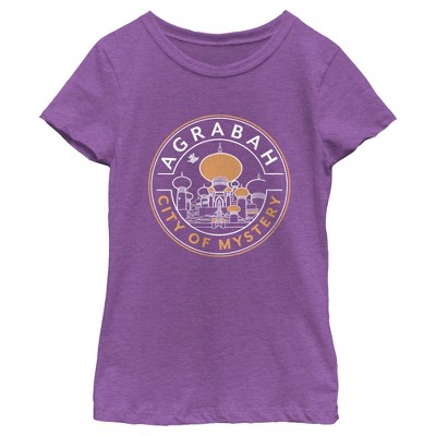 Explore a whole new world filled with magic carpets, powerful genies, and this officially licensed Disney Aladdin Agrabah Cave of Wonders Boys' Graphic T-Shirt! This awesome tee features a lined-inspired graphic of Agrabah encircled by the text: "Agrabah City of Mystery" in distressed white and orange lettering across the front. All of your favorite characters are here to help add some magic to your day with a fun Aladdin design!