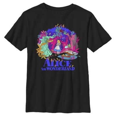 Hop down the rabbit hole and through Tulgey Wood to find your favorite officially licensed style from Disney's Alice In Wonderland! This groovy Boys' Tee features Alice surrounded by flowers with faces and "Alice in Wonderland" printed across the bottom. You'll be "Mad as a Hatter" if you skip out on this tee!