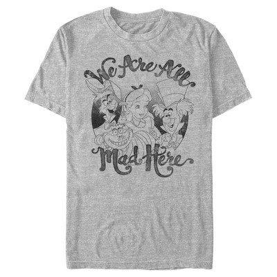 Boy's Alice in Wonderland Cheshire Tattoo We Are All Mad Here T-Shirt - Athletic Heather - Large