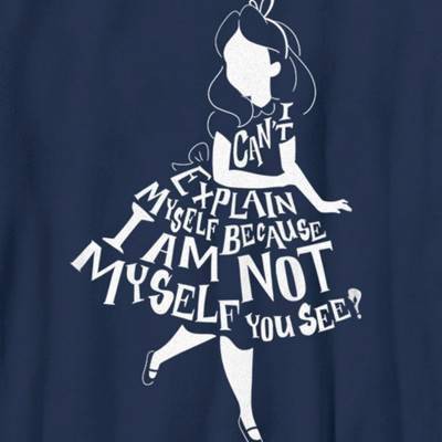 Hop down the rabbit hole and through Tulgey Wood to find your new officially licensed Disney Alice In Wonderland I Am Not Myself Silhouette Tee! This Boys' Tee features a silhouette of Alice with the words "I Can't Explain Myself Because I Am Not Myself You See?" as Alice's dress. You'll be "Mad as a Hatter" if you skip out on this tee!