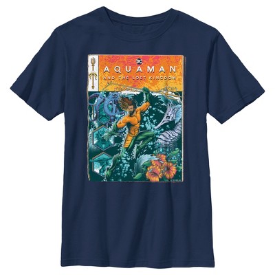 Boy's Aquaman and the Lost Kingdom Retro Pastel Poster T-Shirt - Navy Blue - Small