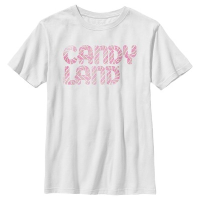 Welcome to Candy Land! If you are in the mood for something sweet, you found the right place with this Boys' Hasbro Candy Land Official Striped Logo Graphic T-Shirt! This stylish board game-inspired tee features a large graphic of the iconic Candy Land logo in a fun white striped pattern across the front. Gather your friends to play together along with all your favorite characters! Race to the goal following the path while wearing this officially licensed Candy Land apparel!