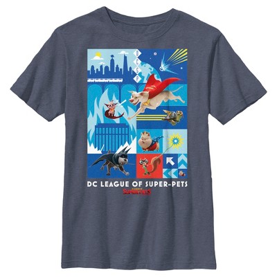 Boy's DC League of Super-Pets Rule the World Lulu Badge T-Shirt - Navy Blue Heather - Small