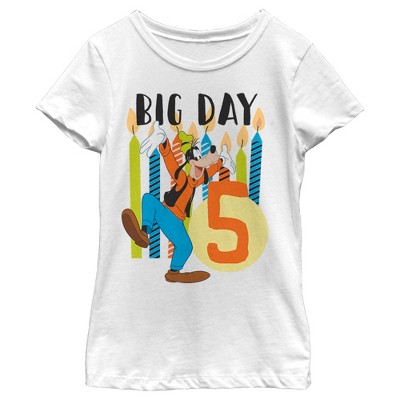 Who knew that dressing "mousey" could be so cute!? Celebrate Walt Disney's most iconic character with these officially licensed Mickey Mouse and Friends styles! Celebrate your 5th birthday with this fun Boys' Tee featuring Goofy dancing in front of candles with "Big Day" printed over the front. This tee will be perfect for your next birthday.