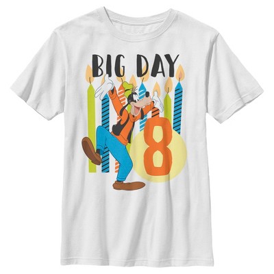 Who knew that dressing "mousey" could be so cute!? Celebrate Walt Disney's most iconic character with these officially licensed Mickey Mouse and Friends styles! Celebrate your 8th birthday with this fun Boys' Tee featuring Goofy dancing in front of candles with "Big Day" printed over the front. This tee will be perfect for your next birthday.
