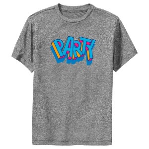 • Strut your stuff with this stylish new boys' t-shirt that is perfect for every occasion! Featuring a large graphic of the word: "Party" in yellow, red, and blue across the front.