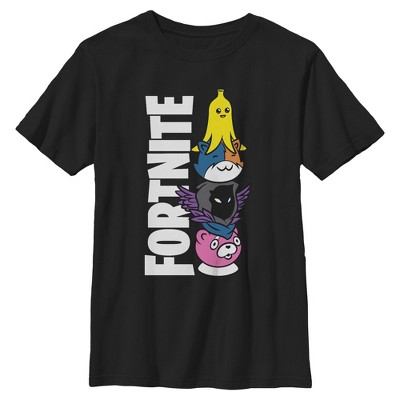 • Strut your stuff with this stylish new boys' graphic t-shirt that is perfect for every occasion! Featuring Peely doing a peace sign with the vertical Fortnite logo across the front.