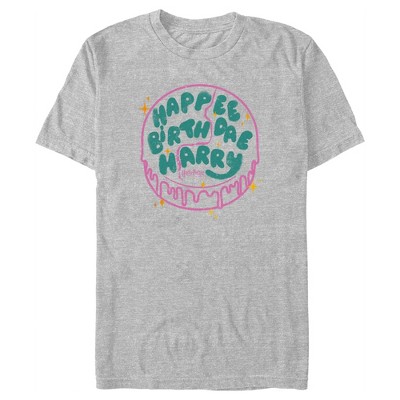 Have a fantastical birthday this year and unlock magical secrets hiding in the closet under the stairs with these officially licensed Harry Potter styles! Head to Hogwarts with your favorite witches and wizards and learn to defeat He Who Shall Not Be Named! This Boys' Harry Potter and the Deathly Hallows Happee Birthdae Cake Graphic T-Shirt features a pink birthday cake that reads the iconic quote from the movie: "Happee Birthdae Harry" in green lettering and the classic movie logo in matching pink print below. And, just remember, the spell is Wing-gar-dium Levi-o-sa and NOT Wingardium Leviosa!