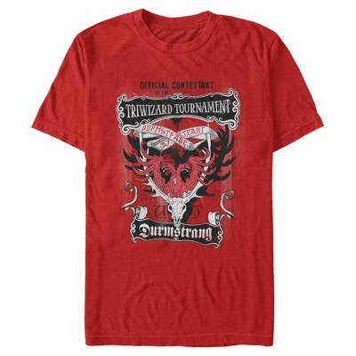 Unlock magical secrets hiding in the closet under the stairs with all your favorite witches and wizards, learn spells, study wizardry, defeat He Who Shall Not Be Named, and uncover the mysteries surrounding the magical school for wizards! This officially licensed Harry Potter Triwizard Contestant Durmstrang Boys' Graphic T-Shirt features the text: "Official contestant of the Triwizard Tournament Durmstrang" with a double-headed eagle crest across the front. And, just remember, the spell is Wing-gar-dium Levi-o-sa and NOT Wingardium Leviosa!