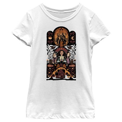 If you're looking for a little hocus pocus this Halloween, then look no further than this officially licensed Disney Hocus Pocus 2 Ornate Ritual Poster Boys' Graphic T-Shirt. You can light the Black Flame candle to awaken the Sanderson witches this Halloween, or you could just celebrate the holiday with this festive Hocus Pocus 2 style instead! A cartoon shows off Becca, Cassie, Izzy, Mary, Sarah, and Winifred Sanderson in an ornate pattern that shows off skulls, ravens, coffins, and more.