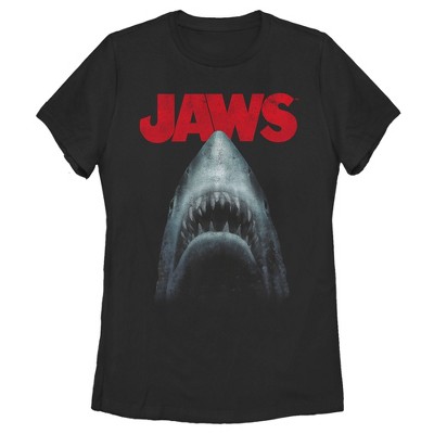 You're going to need a bigger boat for the Jaws Shark Teeth Poster T-Shirt. The most terrifying great white shark in the ocean bares its teeth on this famous movie poster style Jaws tee.