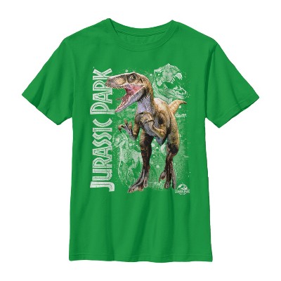 Boy's Jurassic Park The Park Staff Badge, With T-Rex T-Shirt - Kelly Green - X Small