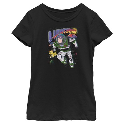 To infinity and beyond! Take your style to out-of-this-world levels with new officially licensed apparel for the whole family from the highly anticipated new movie Lightyear, featuring the origin story of Toy Story's lovable hero Buzz Lightyear! This boys' tee features a retro-inspired, distressed graphic of Buzz and Sox in space with the Lightyear logo printed above.