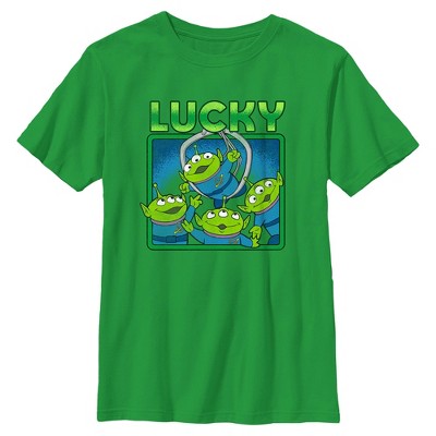 • Show off your lucky charm style with this boys' t-shirt perfect for chasing rainbows and spreading magic! Featuring Stitch with gold and the phrase "Feeling Lucky" printed across the front.