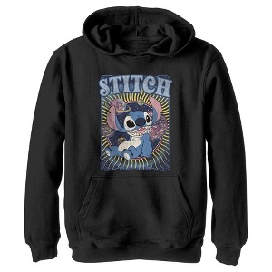 Ohana means family, and that means no hoodie gets left behind! Find the perfect style for your family with this Disney Lilo & Stitch Boys' Distressed Groovy Planets Stitch Graphic Pullover Hoodie! This design features Stitch sitting cutely with planets and stars around him, with his name printed in blue lettering across the top. Celebrate a certain alien, otherwise known as Experiment 626 in style this year with a new hilarious apparel from the movie!