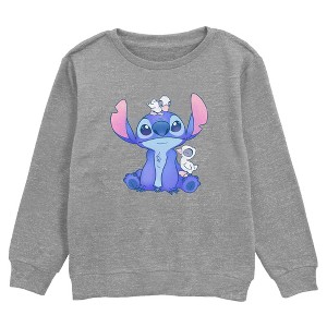 Spring into Lilo & Stitch style with this officially licensed Boys' Graphic Crewneck Sweatshirt, where tropical vibes meet Disney charm! Bring all the magic you need for the season with this unique design featuring Stitch looking at you with teardrop-shaped eyes and sitting cutely across the front, along with two adorable ducklings all over him. Whether you're chasing flowers, enjoying sunny afternoons, or just soaking up the island spirit, this awesome Lilo & Stitch apparel is your go-to for a spring that's both fun and full of heart!