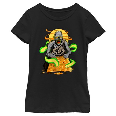 • Strut your stuff with this stylish new Halloween boys' t-shirt that is perfect for the trick-or-treating season! Featuring a scene of a mummy crawling out of a pyramid with a green spirit and a full moon in the background.
