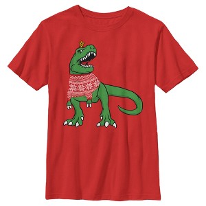 • Strut your stuff with this stylish new Christmas boys' t-shirt that is perfect for the holidays! Featuring a T-Rex with a star on its head just like a Christmas tree while also wearing an ugly Christmas sweater across the front.