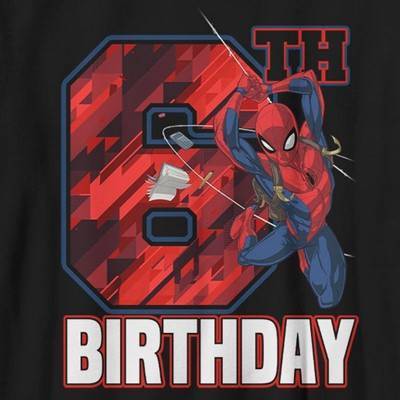 Lose yourself in the pages of a comic book or the movie adventure of a lifetime with your favorite Marvel superheroes! This Boys' T-Shirt features Spider-Man swinging across the front to wish you a happy 6th Birthday! Whether you want to swing through the city, crawl on walls and fight crime with Spider-Man you'll need to be wearing the best tees to do it. It's time to get marvel-ous with awesome Marvel shirts!
