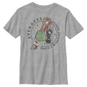 Lose yourself in the pages of a comic book or the movie adventure of a lifetime with your favorite Marvel superheroes! This Boys' T-Shirt features a cool distressed graphic of Thor, Captain America, Iron Man, Black Widow, Hulk, and Hawkeye bumping fists circled by the iconic phrase "Avengers, Earth's Mightiest Heroes"! Whether you want to smash some walls with the Hulk or sail through the air with Iron Man, you'll need to be wearing the best tees to do it. It's time to get marvel-ous with awesome Marvel shirts!