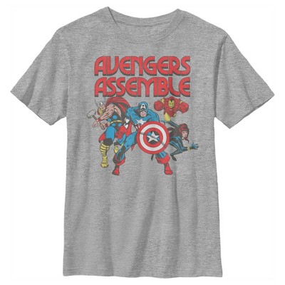 Lose yourself in the pages of a comic book or the movie adventure of a lifetime with your favorite Marvel superheroes! This Boys' T-Shirt features a cool graphic of Iron Man, Captain America, Spider-Man, Black Widow, and Wasp in their classic comic book styles all around Marvel's logo printed across the front in different colors! Whether you want to swing through the city with Spider-Man or sail through the air with Iron Man, you'll need to be wearing the best tees to do it. It's time to get marvel-ous with awesome Marvel shirts!
