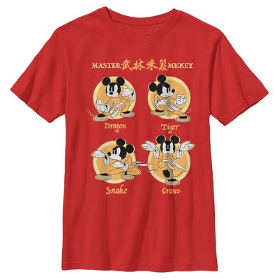 Boy's Mickey & Friends 4th Birthday Oh Boy Let's Party Mickey T-Shirt - Red - X Small