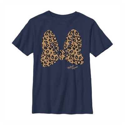 Boy's Mickey & Friends Mickey & Minnie Mouse Cheetah Print Bow Signature T-Shirt - Navy Blue - Medium