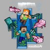 Whether you're building something amazing, battling mobs, or playing with friends, show your love for everyone's favorite game in this officially licensed Minecraft Under the Sea Boys' T-Shirt featuring a graphic of Steve and Alex underwater joined by aquatic mobs such as the Glowing Squid, and the cutest pet ever, Axolotls with the Minecraft logo printed below. Start your adventure, explore the world, discover places, and craft your style with this new tee today in this amazing world of endless possibilities!