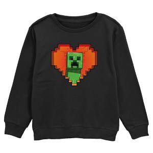 Boy's Minecraft Valentine's Day Creeper Heart Sweatshirt - 1 of 3