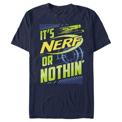 It's Nerf or nothing! Prepare for battle with an officially licensed Nerf style. The Hasbro-owned toy brand is all about bringing home the fun and these classic Nerf tees will be no different. This super fun boys' graphic t-shirt features the phrase: "It's Nerf or Nothin," across the front, along with some foam blasters. Hit a bullseye when it comes to your style with apparel that celebrates your favorite foam blaster toys!