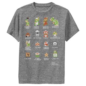 Boy's Nintendo Super Mario Bros Pixel Cast with Names Performance Tee
