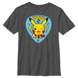 Gotta catch 'em all! Get into the game with the iconic world of Pokemon cards, video games, TV shows, and more with adorable new officially licensed apparel for the whole family featuring all your favorite Pokemon! This Boys' Pokemon Pikachu Rocks Graphic T-Shirt features the text: "Pikachu Rocks," with him winking inside a guitar pick across the front. Grab some new Pokemon apparel today and be the envy of all your friends!