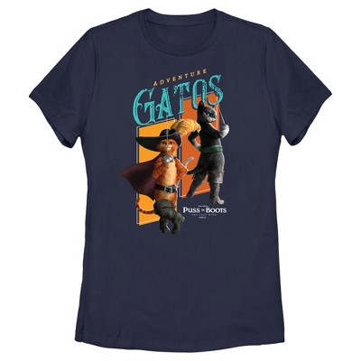 Boy's Puss in Boots: The Last Wish Adventure Gatos T-Shirt - Navy Blue - Large