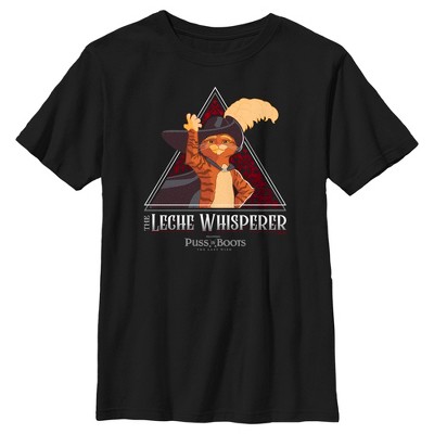 • Strut your stuff with this stylish new everyday boys' t-shirt that is perfect for every occasion! Featuring the trio Puss, Kitty Softpaws, and Perro with the text: "Puss in Boots," below them.