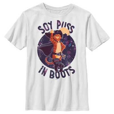 Watch along as Puss sets out on an epic journey to restore his nine lives, with fun new officially licensed apparel for the whole family from the exciting movie Puss in Boots: The Last Wish! This Puss in Boots: The Last Wish Gato Con Botas Boys' Graphic T-Shirt features a purple graphic of Puss with a bright yellow moon in the background. Grab some Puss in Boots: The Last Wish designs today, and show your love for everyone's favorite feline!