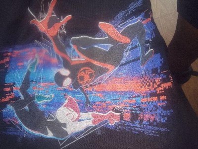 Join Miles Morales once again as he gets catapulted across the Multiverse and encounters a team of Spider-People who he must join to protect the Multiverse itself in Marvel's Spider-Man: Across the Spider-Verse with officially licensed apparel for the whole family! This Boys' Spider-Man: Across the Spider-Verse Miles Morales and Spider Gwen Graphic T-Shirt features Miles Morales and Spider Gwen swinging across the front with a glitch effect in the background. Grab some new Spider-Man: Across the Spider-Verse tees today and show your love for the action-packed new film in the series!
