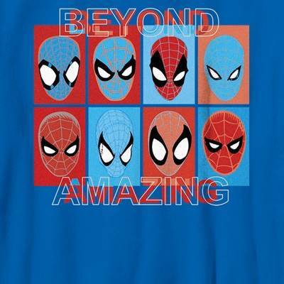 Experience the magic of Spider-Man in a whole new way! Grab some exciting new apparel for the whole family from the Marvel Spider-Man Beyond Amazing Exhibit at the Comic-Con Museum in San Diego, California, and enjoy interactive displays and artifacts from Spider-Man throughout the years! This Boys' Marvel Spider-Man Beyond Amazing Mask Squares Graphic T-Shirt features different versions of the Spider-Man mask inside of blue and red squares with the phrase: "Beyond Amazing" in red and white across the front. Grab one of these new tees today and celebrate the nostalgia!