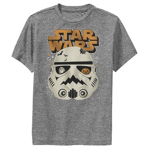 No need to keep looking for fashion help in Alderaan places! Add a little out-of-this-world style into your wardrobe with some truly epic Star Wars tees! Transport yourself to a galaxy far, far away with this new Star Wars Trooper Boys' Performance T-Shirt featuring a fun graphic of a haunted Stormtrooper helmet filled with spiders, a carved pumpkin, and bats! This funny tee celebrates the Star Wars franchise and is perfect for fans everywhere.