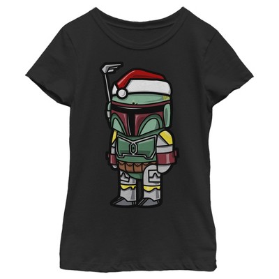 Boy's Star Wars Boba Fett Santa Hat Cartoon T-Shirt - Black - Medium