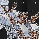 Christmas would sure be different if Vader brought the gifts! Picture this alternate reality with the Star Wars Darth Vader Sleigh Boys' T-Shirt. This Christmas tee shows Darth Vader sitting in a sleigh as eight AT-ATs with antlers pull him towards the Death Star.