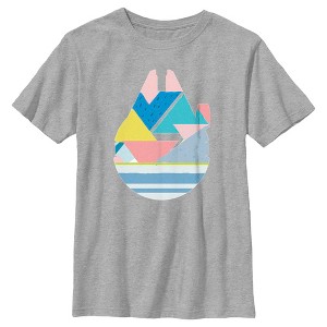 Take a break from bounty hunting to spread some springtime joy with this officially licensed Star Wars Springtime Millennium Falcon Boys' Tee! This retro design features a silhouette of the Millennium Falcon filled in with abstract mountains, a field of grass, and a rushing river. This tee is perfect for the Jedi in your life who loves all thingsStar Wars!
