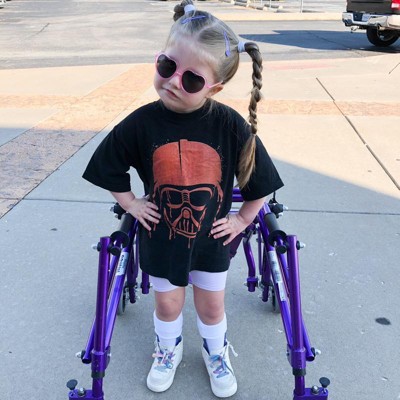 My daughter loves two things.. Halloween and Darth Vader lol when I saw this I knew she had to have it. Expensive for a kids tshirt but I waited for it to go on sale.. after I bought it it went even cheaper. The fit is a little different than most tshirts.. I noticed the sleeves look a bit long compared to the length of the shirt but it looks adorable on her. And the shirt is thicker which I love bc it’ll last longer.. girls shirts are made really thin and wear out so fast. Would definitely recommend!