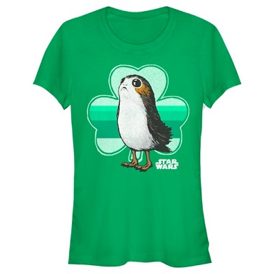 • This cute design features a big green shamrock and an adorable Porg!