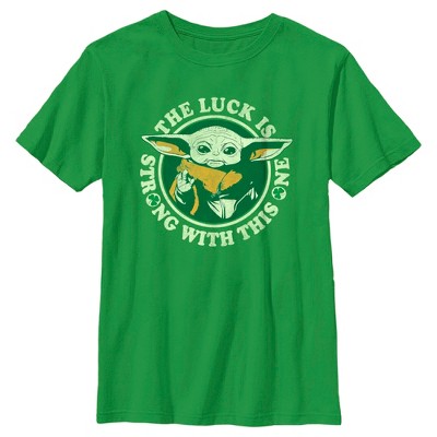 Boy's Star Wars The Mandalorian Grogu St. Patrick's Day The Luck is Strong With This One T-Shirt - 1 of 4