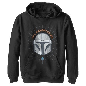 Boy's Star Wars The Mandalorian Helmet Cartoon Pull Over Hoodie - 1 of 3