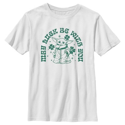 Boy's Star Wars: The Mandalorian St. Patrick's Day Grogu May the Luck be with You Retro T-Shirt - White - X Small