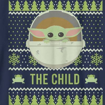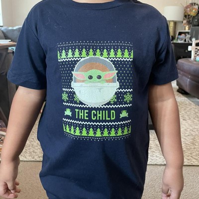 Boy's Star Wars The Mandalorian Ugly Christmas The Child Frog T-Shirt - Navy Blue - X Small